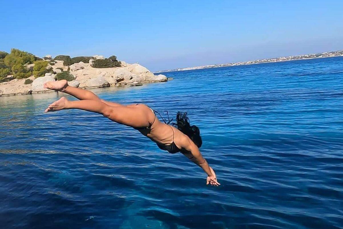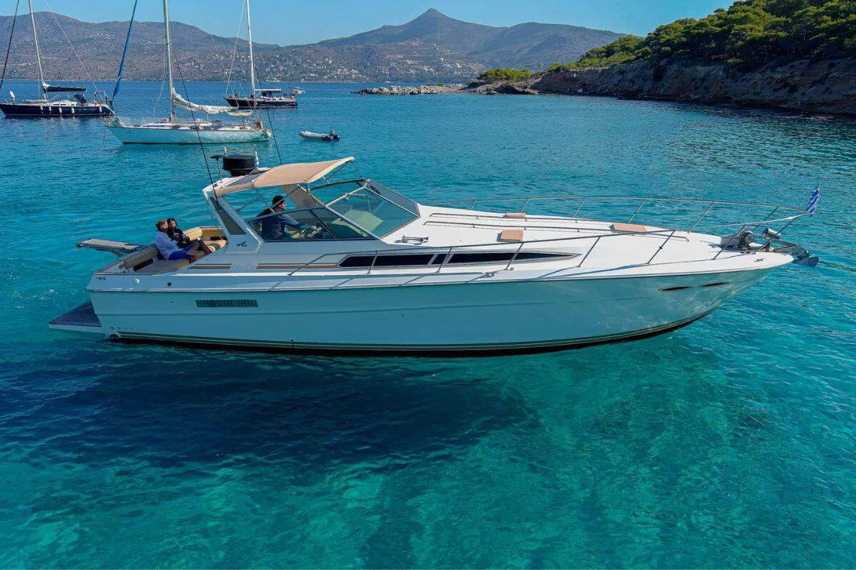 A unique set of different cruises in the Saronic Gulf Islands and Athens Riviera attractions on a Sea Ray 42-foot motor yacht for swimming, relaxing, and sightseeing.