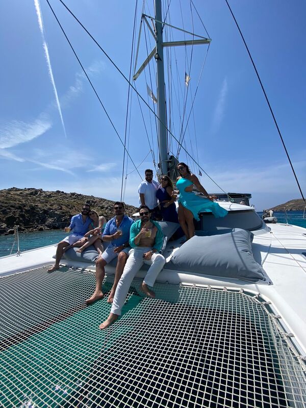 Get on board for your daytime/sunset tour and enjoy a beautiful cruise around Mykonos. Taste the Mediterranean cuisine straight from our chef on board while enjoying wine or beer. Swim in the emerald blue waters during our stops in Delos & Rhenia. Experience the magical underwater landscape while snorkeling or relax enjoying our SUP under the Mykonian sun. In case of unfavorable weather conditions we offer cruises in Mykonos’ south beaches as an alternative. Are you ready to hop on? Bring only your vacation vibes & let the crew take care of the rest!