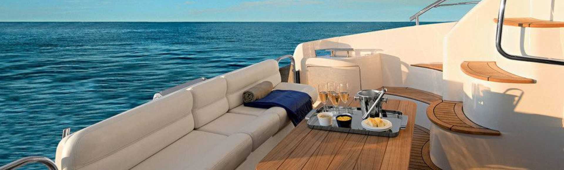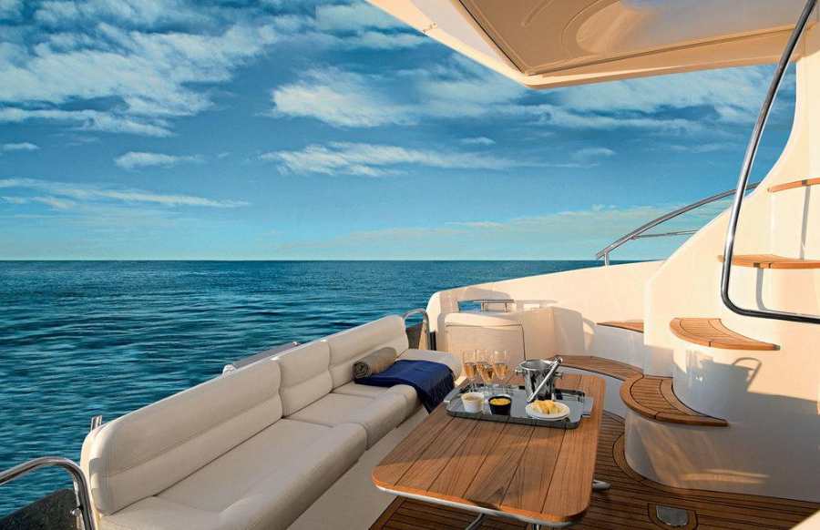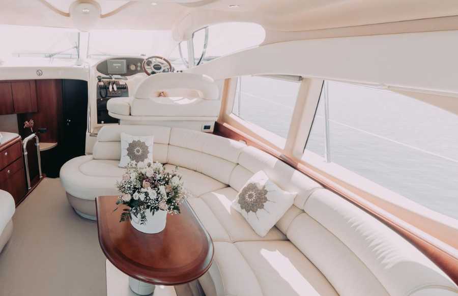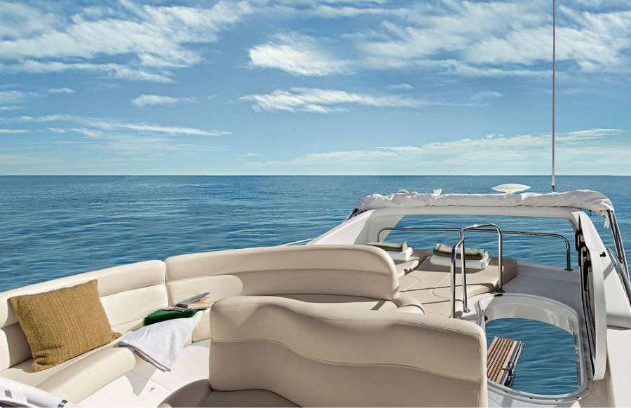 The Azimut 43 offers luxury, comfort and safety at sea. Flybridge is large and spacious, with plenty of comfortable seating areas and a large sunpad.