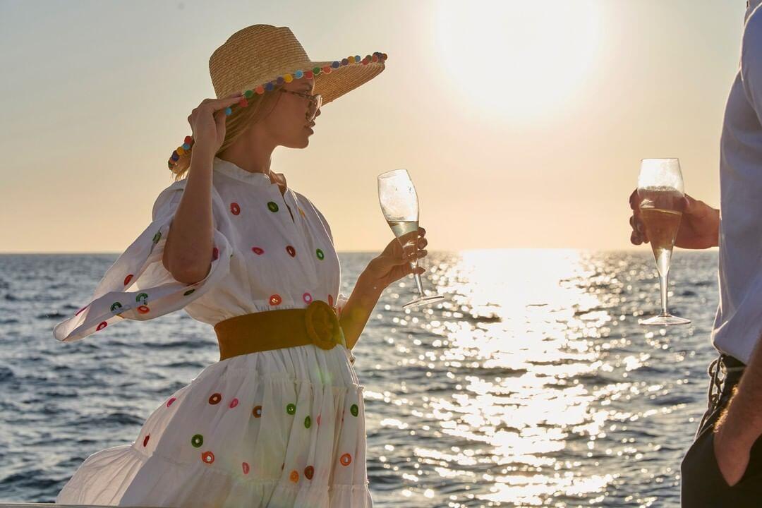 Experience Santorini’s most memorable locations and enjoy delicious cold dishes and local products while enjoying the sun and sea-breeze relaxing on the yacht. Want the full Santorini experience? Try a luch or dinner in Thirasia island at a traditional small taverna by the sea (fresh fish, bio specialties, local recipies and ingredients). Vegetarian meal available. This service is optional and is offered at a special low price. Other special services and change of route are available upon request.